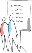 Especially when it comes to training material little hand-drawn illustrations loosen things up nicely and very often we use them as navigators as the stand out by being different and therefore stay in mind.